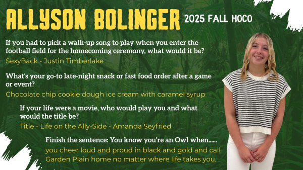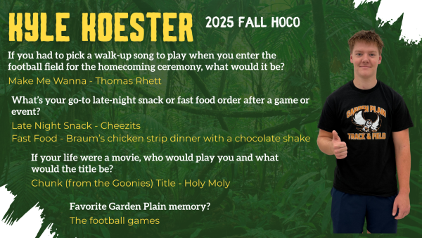 This is Kennedy Hayden’s first year writing for GP You Know. She is a sophomore at Garden Plain High School who plans to play volleyball, basketball, and run track. Kennedy is very passionate about sports and bettering herself. Outside of school, Kennedy likes to spend time with friends, read, and watch movies. Even though our community is small, Kennedy still appreciates them very much. She likes how everyone knows everyone and how the community is so open to one another.